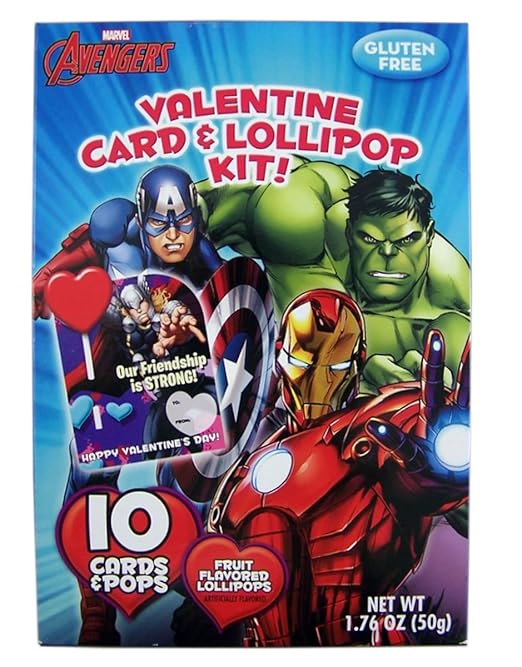 About the product Marvel Avengers Valentines Day Card and Lollipop Kits Pack of 2 - 10 Count Boxes Lollipops - 1.76 oz each box Fruit Flavored Lollipops Great Valentines Day Exchange Gifts for School Parties CLICK HERE TO BUY THIS PRODUCT Product description Marvel Avengers Valentines Day Card and Lollipop Kits - Pack of 2 - 10 Count Boxes - Lollipops - 1.76 oz each box - Fruit Flavored Lollipops - Great Valentines Day Exch